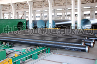 中原管道制造有限公司现有3PE(PP)/FBE防腐钢管涂敷生产线一条,产品规格:φ219mm~φ1829mm,执行SY/T0413,GB/T23257,DIN30670等标准。生产线装备了国内外最先进的防腐生产设备,其核心设备为:钢管内、外壁喷丸清理机、工艺传送线、中频感应加热系统、环氧粉末静电喷涂系统、聚乙烯和胶粘剂挤出机、管端打磨设备、美国固瑞克无气喷涂机、固化室等均有微机控制,工艺先进,生产设备具有自动化程度高,运行稳定,质量可靠,加工适应能力强等显著等特点。